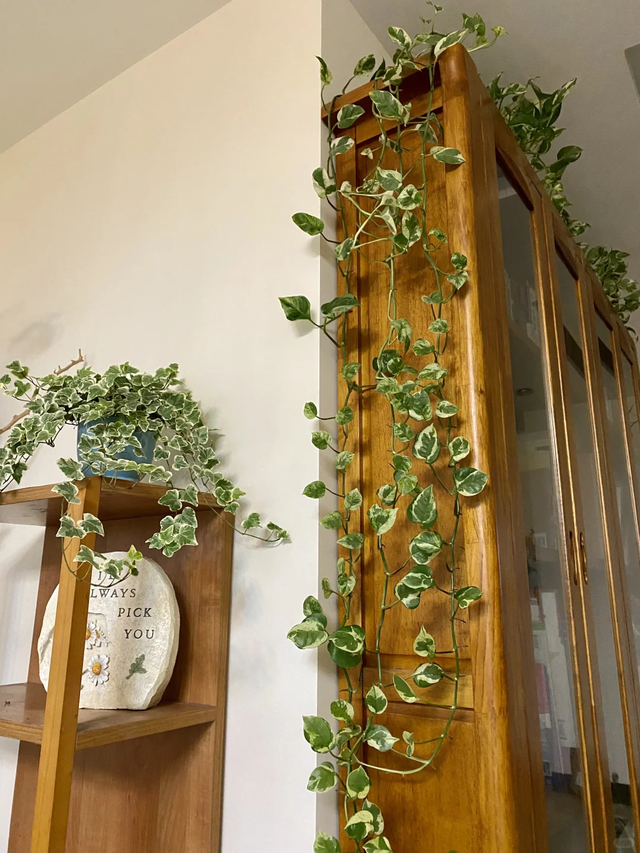 又名常春藤,藤马细长,叶片鲜亮,金灿灿的像个小太阳一样,具备非常高的观赏价值,是不少人首选的观赏性绿植。